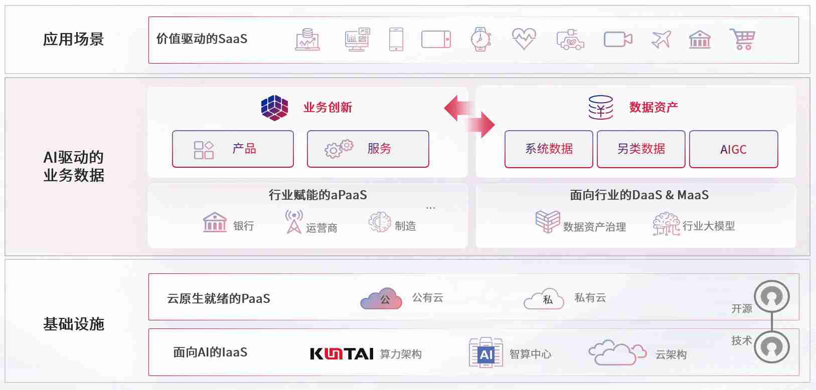 数字时代,,,围绕企业数字化转型的关键要素,,尊龙凯时数码开创性的提出数云融合战略和技术体系框架,,,,着力在云原生、、、、数字原生、、AI原生和信创产业上架构产品和服务能力,,,,为处在不同数字化转型阶段的快消零售、、汽车、、、、金融、、、医疗、、、、政企、、、教育、、、运营商等行业客户提供泛在的敏捷IT能力和融合的数据驱动能力,,,构建跨界融合创新的数字业务场景和新业务模式,,助力企业级客户建立面向未来的核心能力和竞争优势,,,,全面推动社会的数字化、、、、智能化转型升级。。。